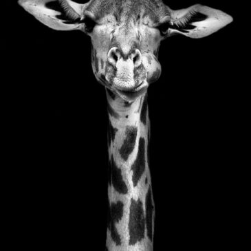 Unieke zwart wit fotografie van giraf