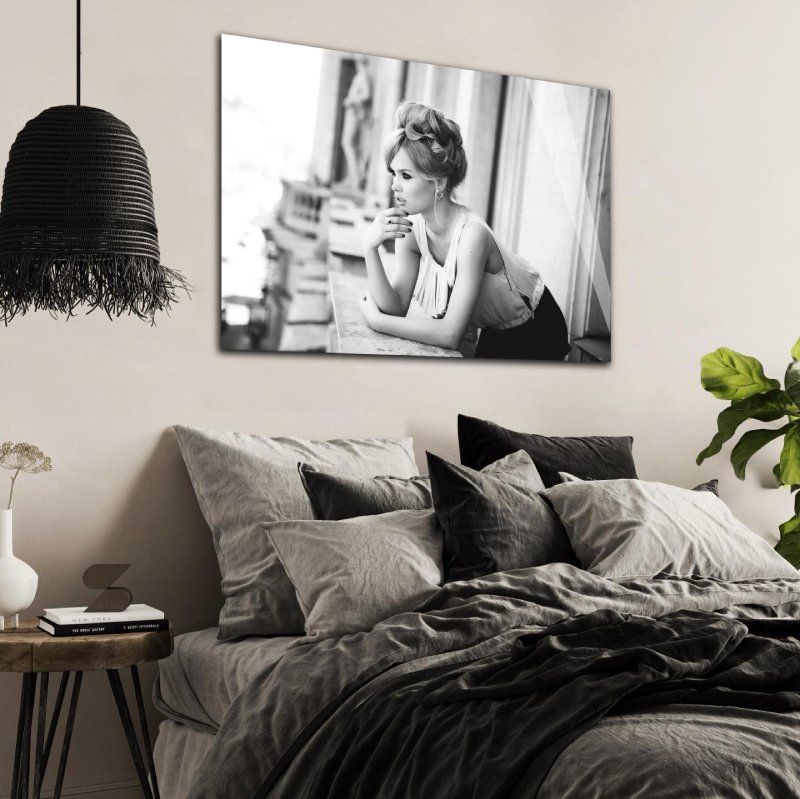 Zwart wit wall art decor van een mooie vrouw. Een vrouw met klasse vertelt nooit haar leeftijd of welke geheimen zij met zich meedraagt. Dit prachtige plexiglas schilderij van een vrouw op een balkon laat veel te raden over. Wacht zij vol spanning op haar geliefde of is zij klaar om zich in het avontuurlijke nachtleven te storten? Mijmert ze over de mogelijkheden en ontmoetingen die nog in het verschiet liggen? A lady never tells. Met het retro zwart-wit glasschilderij geef je een artistieke touch aan elke ruimte in huis. De stijlvol geklede woman met opgestoken haar is in verschillende formaten, zowel liggend als vierkant, verkrijgbaar. Ontdek bij onze art collectie meer kunst fotografie met mysterieuze vrouwen. Tevens is dit black and white fotokunstwerk verkrijgbaar op onder andere akoestisch vilt en Dibond.