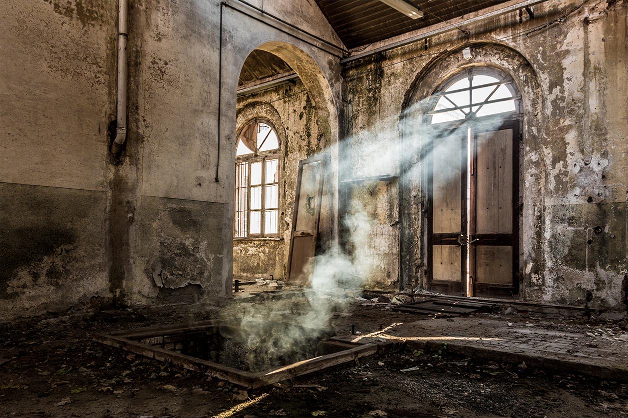 Een schilderij op glas in een verlaten locatie leidt tot verbluffende contrasten. Dit kunstzinnige schilderij op plexiglas toont de ruigheid van een vervallen, abandoned omgeving en maakt deze, aan de hand van subtiele details, tot een lust voor het oog. De stilte en de afwezigheid van mensen, de afgebladderde muren, de verweerde vloer en de functieloze deur vormen samen de perfecte tegenstelling met de sfeervolle lichtinval door een bovenraam, dat zich als mysterieuze mist door de ruimte beweegt. Het verlaten gebouw heeft een fascinerende aantrekkingskracht en een magische charme. Tevens verkrijgbaar op onder andere akoestisch vilt en Dibond. Bekijk onze gehele Abandoned serie: Abandoned serie
