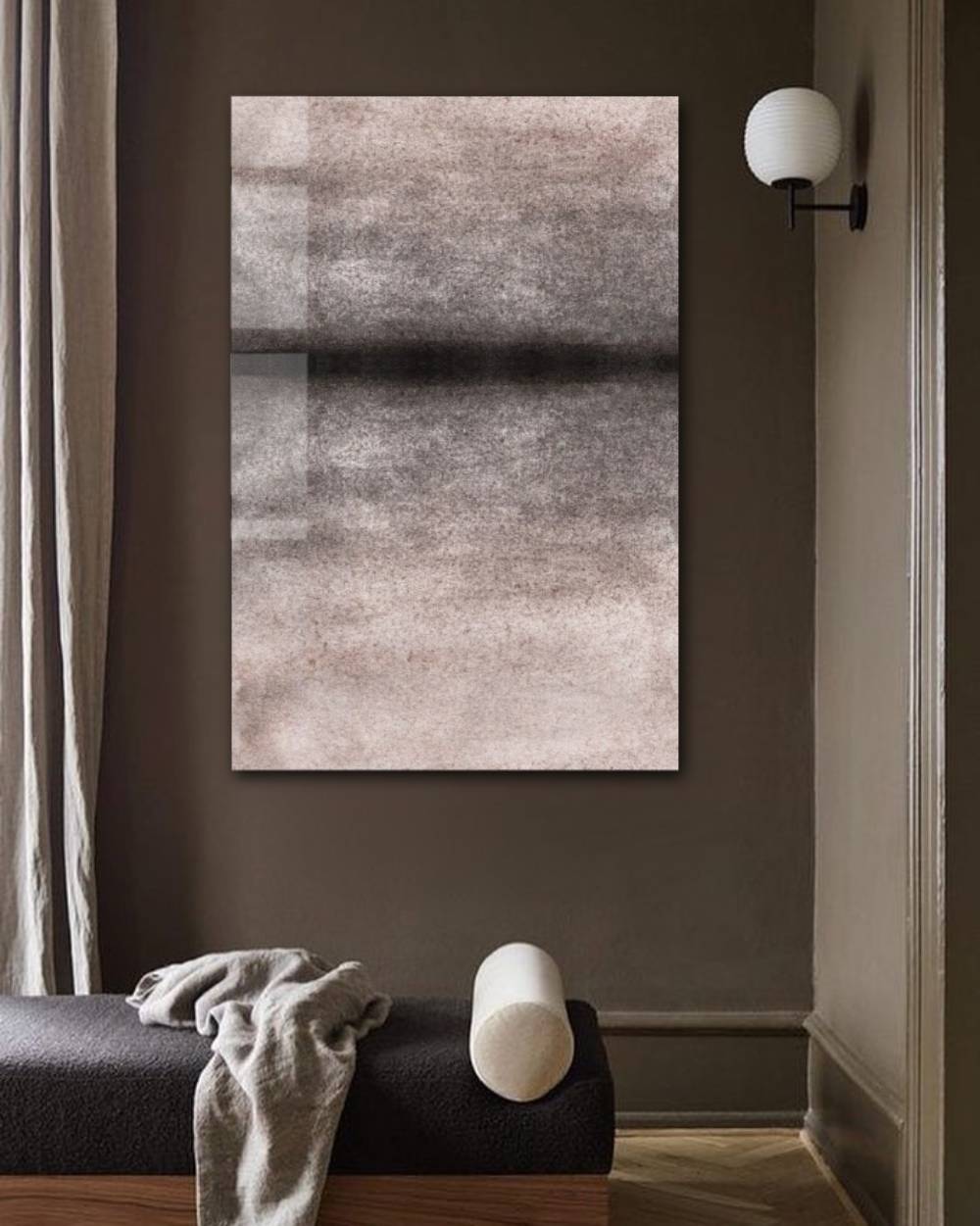 Akoestisch doek is een speciaal ontworpen materiaal dat geluid absorbeert en tegelijkertijd als stijlvolle wanddecoratie dient. Het combineert esthetiek met functionaliteit, waardoor het perfect is om zowel je interieur te verfraaien als de akoestiek in een ruimte te verbeteren tot wel 75%. Door de vilt textuur zijn de kleuren zachter dan bij plexiglas of dibond, wat vooral prachtig uitpakt bij abstracte en rustige werken. Met akoestische wanddecoratie verbeter je de geluidsbeleving in je huis of kantoor. Het doek dempt nagalm en storende geluiden, terwijl het kunstwerk een elegant statement maakt. Zo creëer je een rustige en harmonieuze sfeer met een chique geluiddempend schilderij.