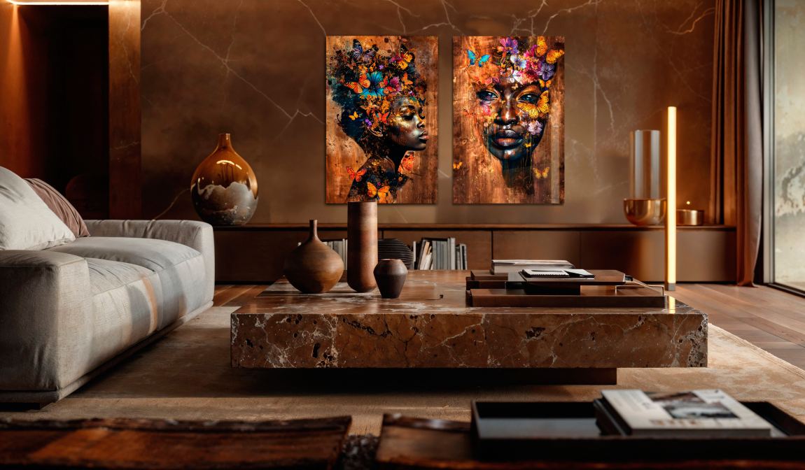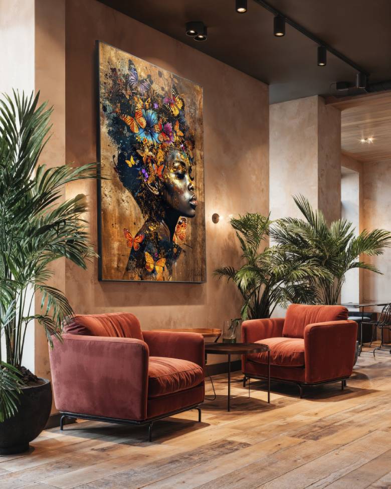 Wall art van mooie Afrikaanse vrouw met vlinders