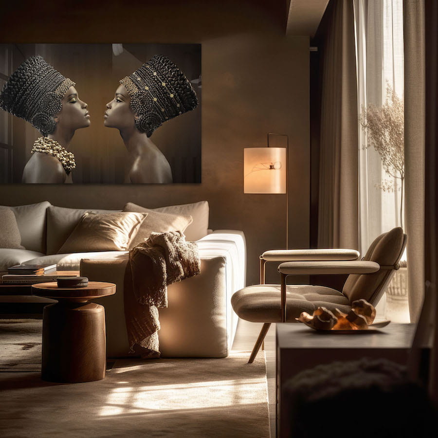 Zeker. Wij bieden digitale visualisaties zodat je kunt zien hoe een kunstwerk in jouw ruimte staat, inclusief kleuren en formaten. En onze interieurstylisten kunnen je adviseren over de keuze van materialen en formaten.