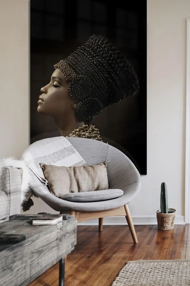 Wanddecoratie van Afrikaanse vrouw. Fotokunst van mooie tribalvrouw verkrijgbaar op verschillende materialen, zoals plexiglas van museumkwaliteit, Dibond en akoestisch vilt. Een bijzonder Afrikaans vrouwenportret voor uw interieur! Bekijk ook andere unieke vrouwenportretten binnen onze collectie: Portrait