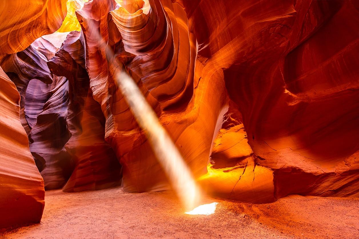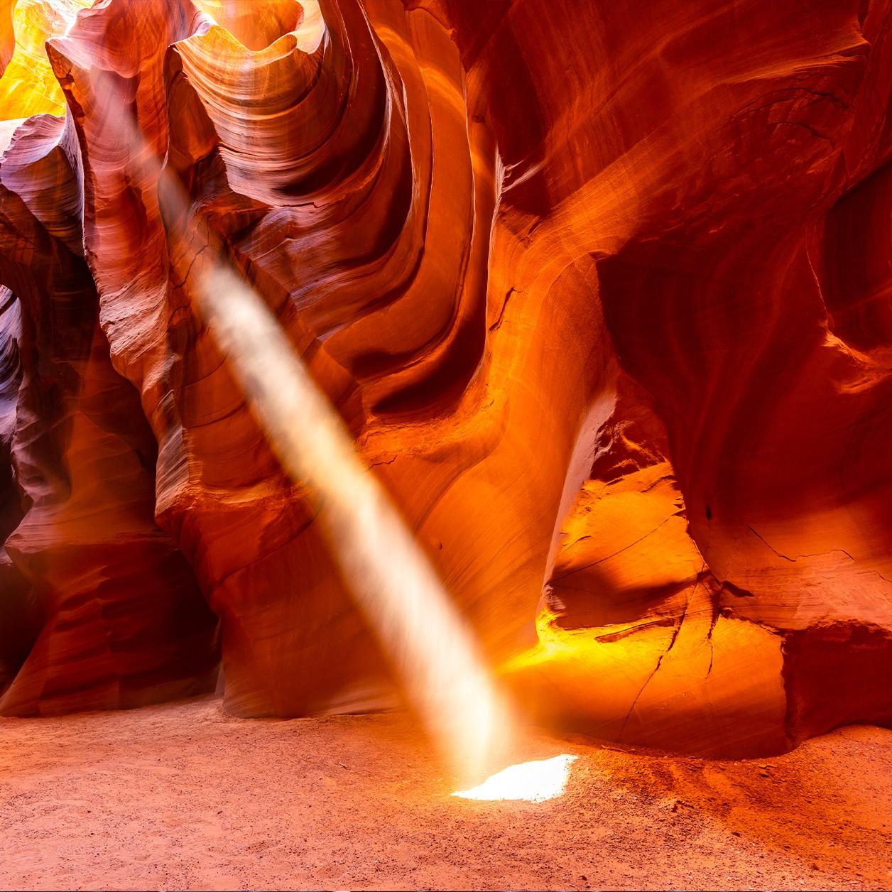 De Antelope Canyon in de Verenigde Staten is ontdekt door de Navajo indianen, die dit natuurwonder lange tijd geheim wisten te houden. Tegenwoordig is deze kloof met schitterend gevormde, golvende rode rotswanden in Arizona een trekpleister van jewelste. Met de wanddecoratie van de natuur van de mooie Antelope Canyon II heb je deze magische wereld altijd op zichtafstand. Het felle zonlicht schijnt door de nauwe bovenkant van de hoge kloof naar binnen, waardoor de zandstenen rotswanden wondermooie rood-oranje kleurschakeringen krijgen die met het uur veranderen. Het plexiglas schilderij is een verrijking voor je interieur en is zowel als liggende als vierkante kunstafbeelding in verschillende formaten verkrijgbaar. Tevens verkrijgbaar op onder andere akoestisch vilt en Dibond. Op zoek naar de verticale variant? Bekijk dan het plexiglasschilderij Antelope Canyon