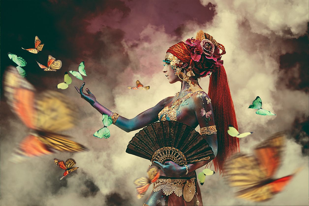 Muurkunst van een mooie vrouw met vlinders. Deze luxueuze wanddecoratie toont een betoverende vrouw omringd door vlinders en is een van de unieke en kleurrijke foto-artworks van Jaime Ibarra. De prachtige woman with butterflies is verkrijgbaar op akoestisch doek, Dibond en plexiglas van museumkwaliteit. Bekijk ook andere kunstwerken van Jaime Ibarra via: Jaime Ibarra Photography