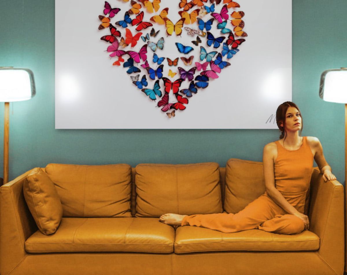 Wanddecoratie van vlinders. Deze butterfly fotokunst toont kleurrijke vlinders die samen een hart vormen. Deze stijlvolle vlinder wanddecoratie komt met ons plexiglas van de hoogste kwaliteit, met lumineuze kleuren tot leven. Of bestel deze butterfly art op geluiddempend vilt voor een verbeterde akoestiek. Deze vlinder is ook verkrijgbaar als Dibond muurkunst. Bekijk ook andere vlinderfoto artworks: butterfly.