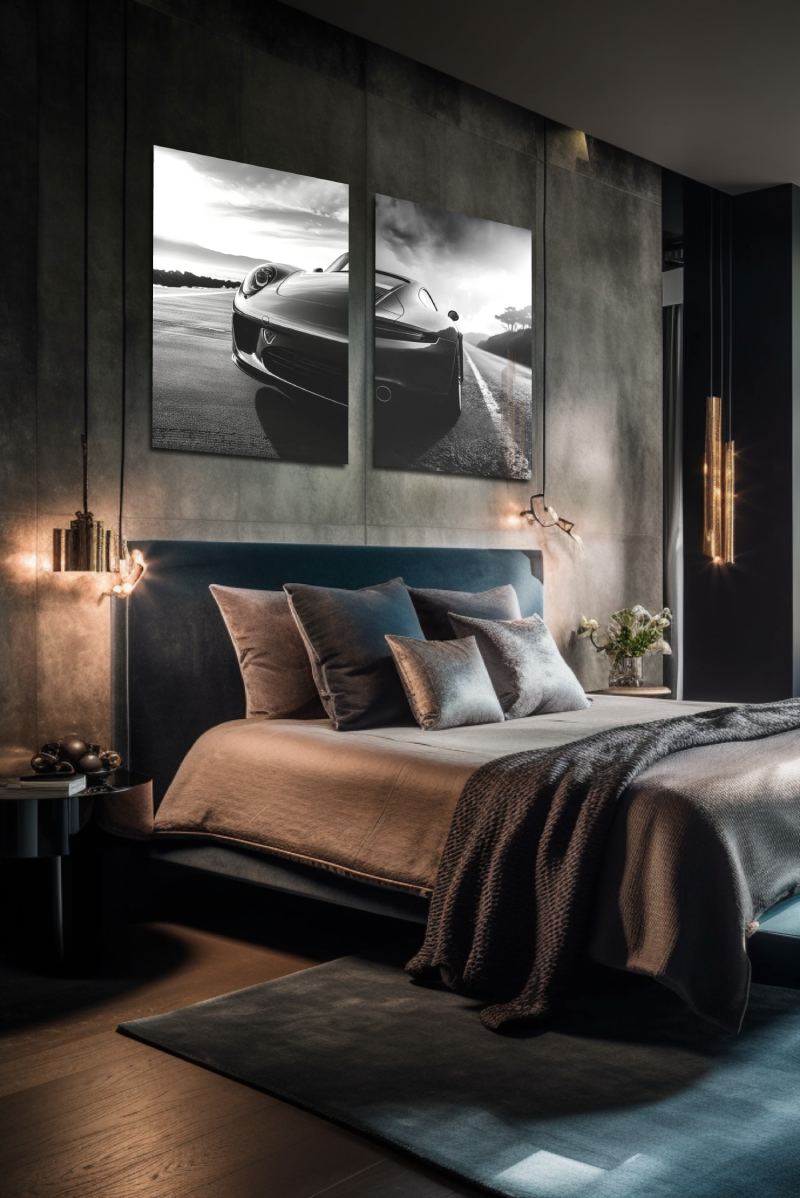 Zwart-wit wall art van luxe auto. De Cars Collection I toont de achterzijde van een chique auto. Stijlvolle fotokunst van het bekende luxueuze automerk. Verkrijgbaar als onder andere akoestisch schilderij, Dibond- of plexiglas kunstwerk. Bekijk ook Car Collection II voor een tweeluik van deze stoere sportauto in black and white: Car Collection II