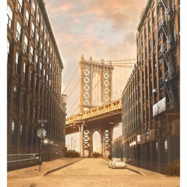 Schilderij Manhattan Bridge New York. Dit artistieke fotokunstwerk van Manhattan Bridge in New York heeft een zeer bijzondere sfeer door haar sepia en zandkleuren. Deze fotokunst van Manhattan Bridge in New York met het laagje woestijnzand geeft een artistieke toon aan de woestijnstad en geeft het schilderij een surrealistisch karakter met de unieke kleuren. Moderne kunst, verkrijgbaar op onder andere plexiglas, Dibond en akoestisch vilt. Bekijk de gehele serie desert city architectuur foto’s: