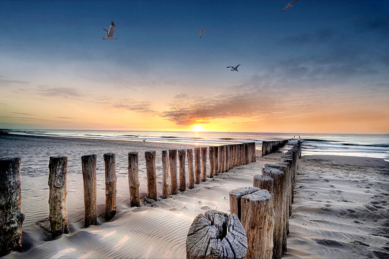Kunst voor aan de muur van de oceaan. Luxe wanddecoratie van een prachtig zandstrand met een mooie zonsondergang of zonsopgang. De duinen rollen via een pad uit op het strand en naar de zee. Lumineuze strandfoto van geel strand, golven en de oceaan. Deze stralende seascape is verkrijgbaar op verschillende materialen, zoals acrylglas, Dibond en akoestisch doek. Neem een kijkje bij onze gehele landscape collectie: Landscape Collection