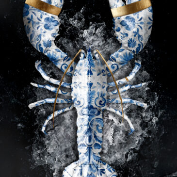 Wall art van een kreeft. Kunstwerk voor in de keuken van een kreeft met goud en Delfts Blauw. Deze unieke kitchen art toont het bekende zeevruchtschaaldier met een gouden rand en Delfts Blauwe motieven. Een bijzondere aanvulling voor bijvoorbeeld het keukeninterieur en verkrijgbaar op geluiddempend paneel, Dibond of plexiglas van museumkwaliteit in bijna alle formaten, ook custom. Bekijk naast deze luxe lobster ook onze Wonders of the Sea-serie voor andere sea life fotoart: Wonders of the Sea