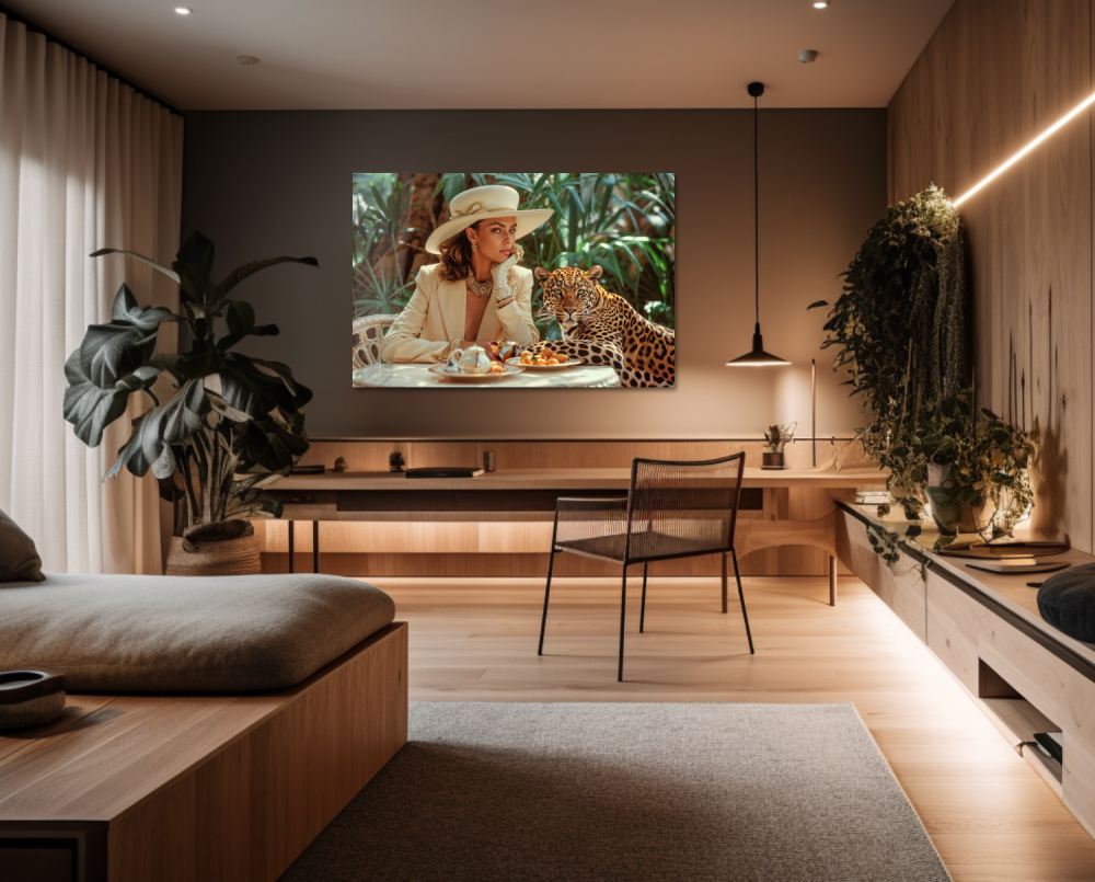Wanddecoratie op plexiglas geeft je interieur een moderne en luxe uitstraling. Door de heldere, glanzende afwerking komen kleuren en details van je schilderij optimaal tot hun recht en heeft het een bijzondere dieptewerking door de glans van het materiaal. Bij een donker kunstwerk in een ruimte met veel zonlicht is er meer reflectie en kan er gekozen worden voor een wandecoratie met een matte afwerking (dibond).