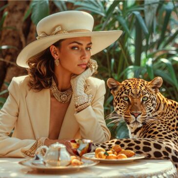 Luxe glamour schilderij, Dynasty I, voor een chique aanvulling op het interieur, geprint op verschillende materialen zoals plexiglas, Dibond en geluiddempend vilt | Een jaren ’60 high society luxury foto artwork van een mooie vrouw in modieuze retrokleding, naast een Wartburg 311 auto en voor een grote villa | Bekijk ook onze andere Dynasty wall art: Dynasty wall art