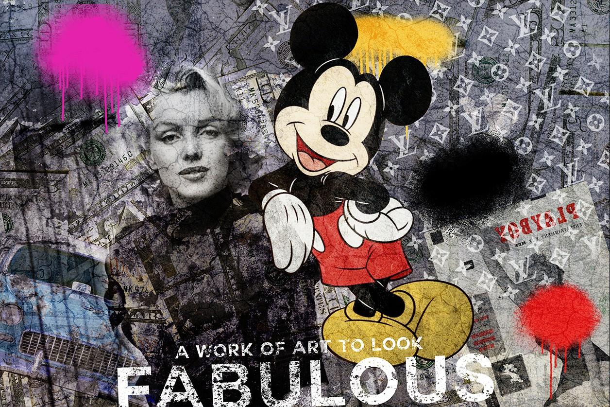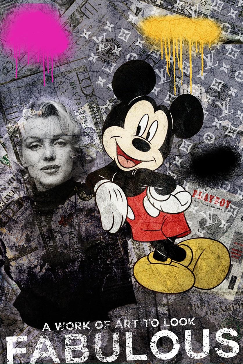 Pop art kunstwerk Marilyn Monroe & Mickey Mouse