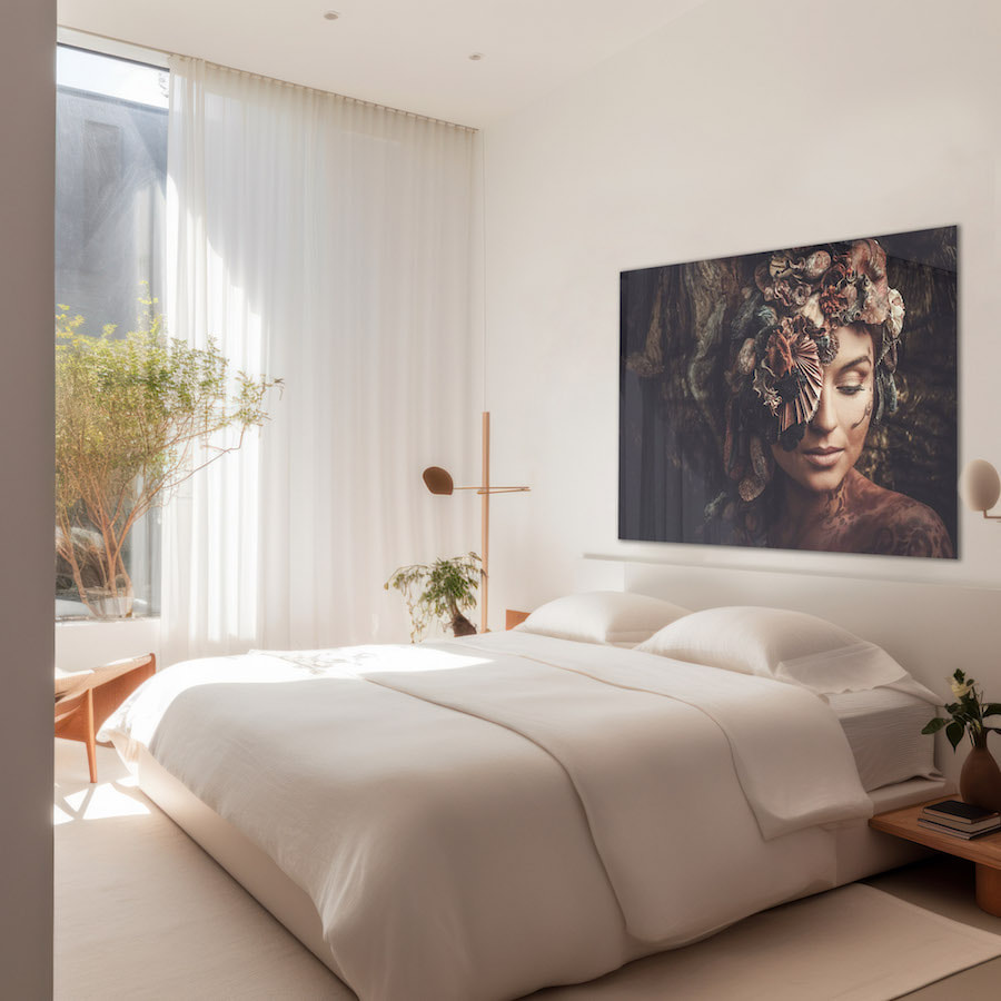 Wanddecoratie op plexiglas geeft je interieur een moderne en luxe uitstraling. Door de heldere, glanzende afwerking komen kleuren en details van je schilderij optimaal tot hun recht en heeft het een bijzondere dieptewerking door de glans van het materiaal. Bij een donker kunstwerk in een ruimte met veel zonlicht is er meer reflectie en kan er gekozen worden voor een wandecoratie met een matte afwerking (dibond).