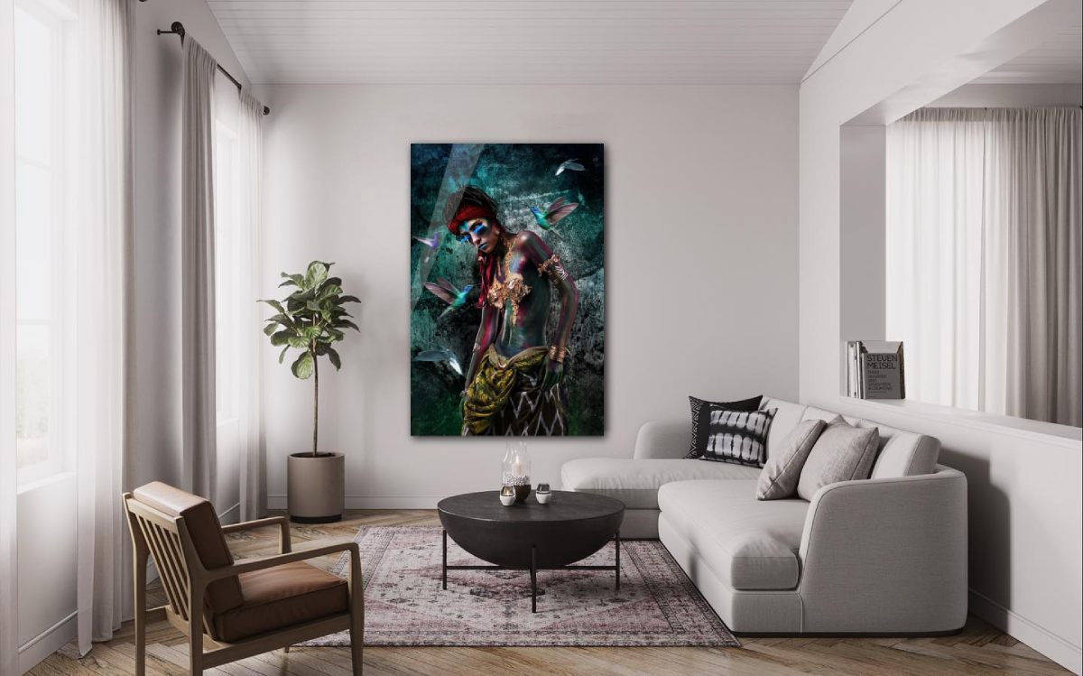 Wanddecoratie op plexiglas geeft je interieur een moderne en luxe uitstraling. Door de heldere, glanzende afwerking komen kleuren en details van je schilderij optimaal tot hun recht en heeft het een bijzondere dieptewerking door de glans van het materiaal. Bij een donker kunstwerk in een ruimte met veel zonlicht is er meer reflectie en kan er gekozen worden voor een wandecoratie met een matte afwerking (dibond).