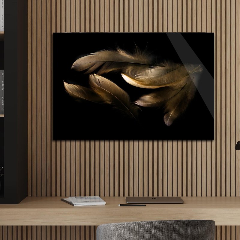 Feathers wall art op akoestisch doek, Dibond of plexiglas. Met dit schilderij van gouden veren creëert u een stijlvolle finishing touch voor uw interieur. Deze abstracte kunst van veren is tevens als feather art op plexiglas van museumkwaliteit en Dibond verkrijgbaar! Voor meer feather art en veren artworks bekijk op onze website: Feather Art