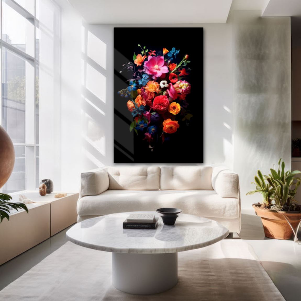 Dit stilleven van bloemen op plexiglas zet de puntjes op de i in een stijlvol interieur. Ons acrylglas van de hoogste kwaliteit geeft dit bloemen fotokunstwerk lumineuze kleuren met onze haarscherpe prints, of je kunt kiezen voor ons duurzame Dibond of akoestisch vilt voor een verbeterde akoestiek. Een bijzonder flower still life als chique wanddecoratie in uw interieur.