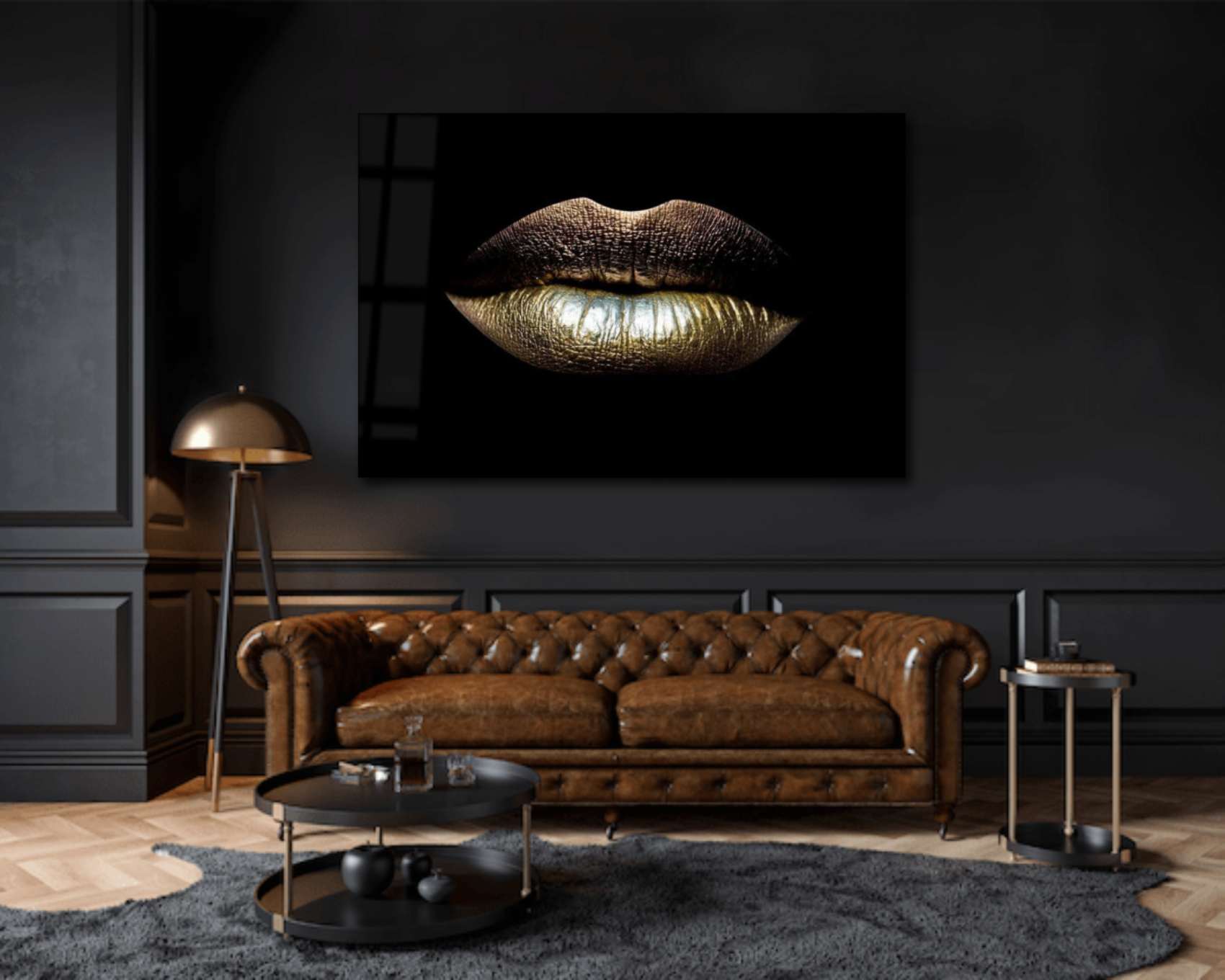 Luxe fotokunst van gouden lippen op een diep zwarte achtergrond. Deze fotoart van sexy gold lips is verkrijgbaar op verschillende materialen zoals acrylglas, Dibond en akoestisch doek. Bekijk ook andere lippen wanddecoratie op onze website: Lips