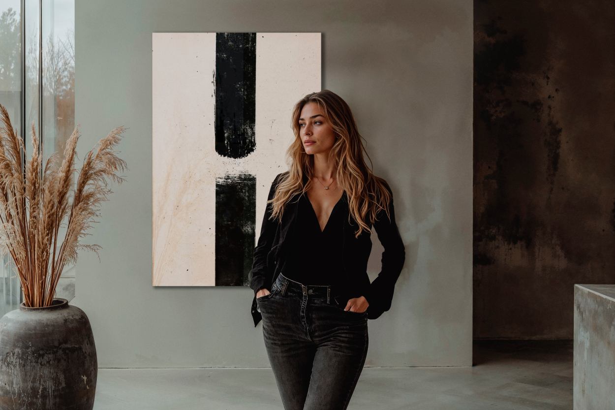 Zwart-wit abstracte wall art. Abstracte black-and-white fotokunst, Japanese Balance, is een modern fotokunstwerk gebaseerd op de Japanese Brush Stroke. Verkrijgbaar op geluiddempend doek voor een verbeterde akoestiek of op ons chique plexiglas voor een stijlvol interieur. Bekijk ook andere abstracte Japanse wandkunst op onze website: Japanese Brush I & II