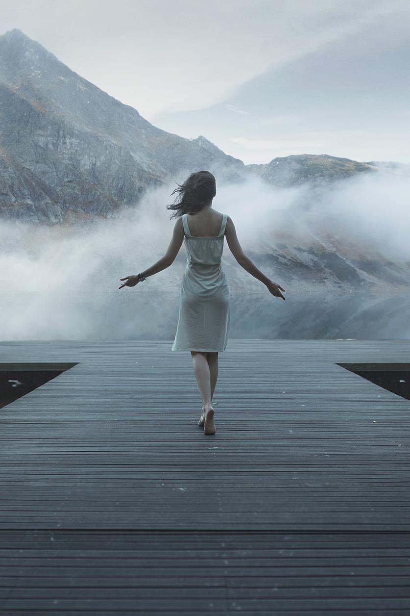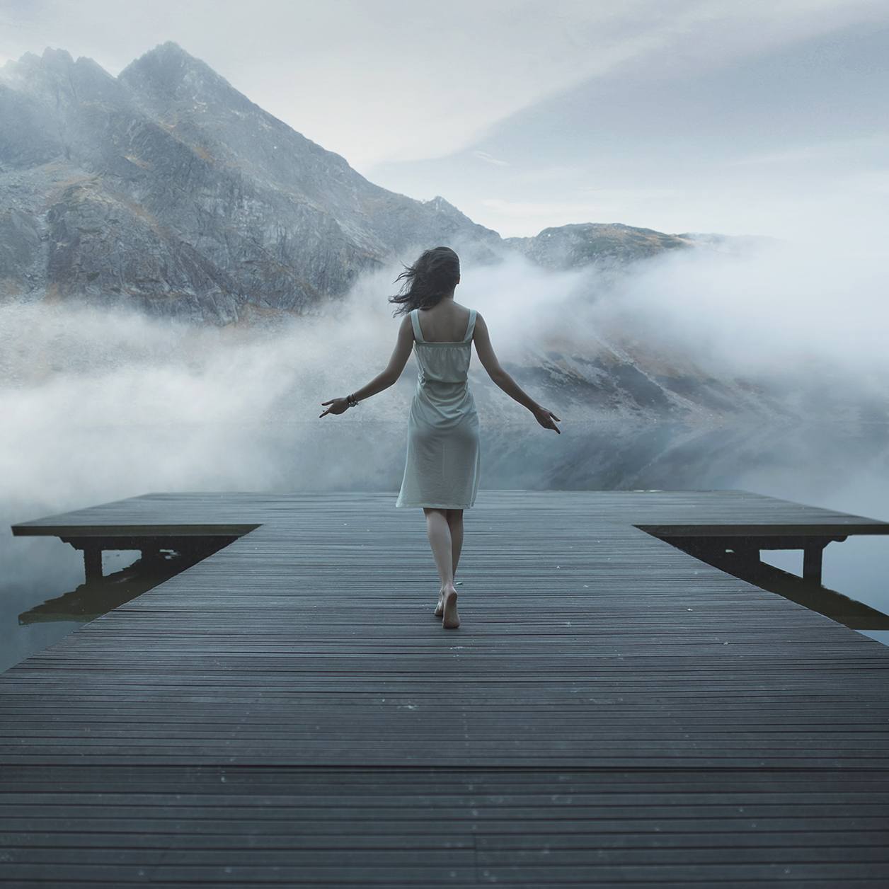 Het mysterie van het leven wordt hier prachtig weerspiegeld als een mysterieuze vrouwen-figuur in dit mistige bergmeer landschap. De mist die het bergachtige landschap half verhuld. De witte fladderende jurk die het lichaam van de vrouw half verhuld. Zowel de vrouwenfiguur als het landschap spreken van de schoonheid van het onbekende. Dit wordt versterkt door de wit-, grijs- en blauwtinten. De vrouw opent haar armen naar de onbekende wereld: een afbeelding krachtig in zijn mysterieuze kwetsbaarheid kan dit glasschilderij van plexiglas een diepe verrijking aan uw interieur geven. Dit unieke werk voor aan de muur is verkrijgbaar op onder andere plexiglas, Dibond en akoestisch vilt.