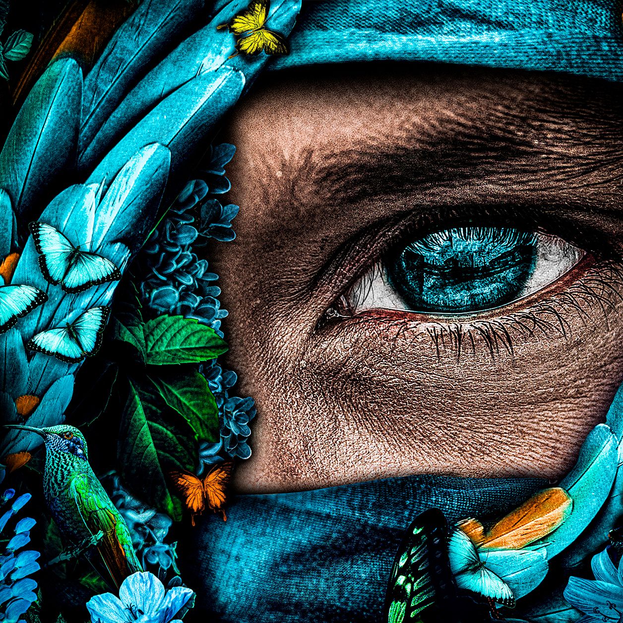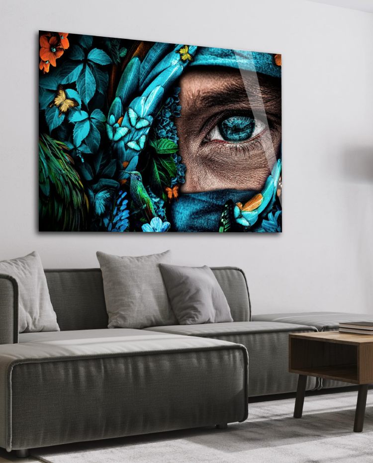 Portretfoto van een mysterieus gezicht met mooie blauwe kleuren, vlinders en bloemen. Wall art van mysterieus portret. Portretkunst op onder andere akoestisch vilt, Dibond of plexiglas met lumineuze kleuren. Donkere kleuren en tinten van blauw en groen maken dit magische fotokunstwerk zeer geschikt voor elke ruimte in de woning. Dit portretschilderij is verkrijgbaar in staand, liggend en vierkant formaat. Neem naast deze portret wanddecoratie ook een kijkje bij de 4 varianten van dit artistieke portret: Mystery I, II, III & IV
