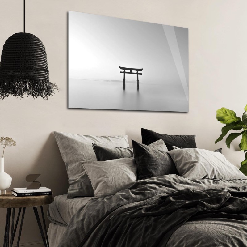 Fotokunstwerk van Aziatische cultuur. De pagode komt veel voor in Japanse boeddhistische tempels en in China en Thailand dienen sommige pagodes als herdenkingsmonument. Deze mystieke wall art toont ons zwart-wit wanddecoratie van het Aziatische bouwwerk in de zee, omringd door mist. Verkrijgbaar als schilderij op plexiglas, Dibond en akoestisch doek. Neem een kijkje bij onze gehele cultuurcollectie: Culture Collection