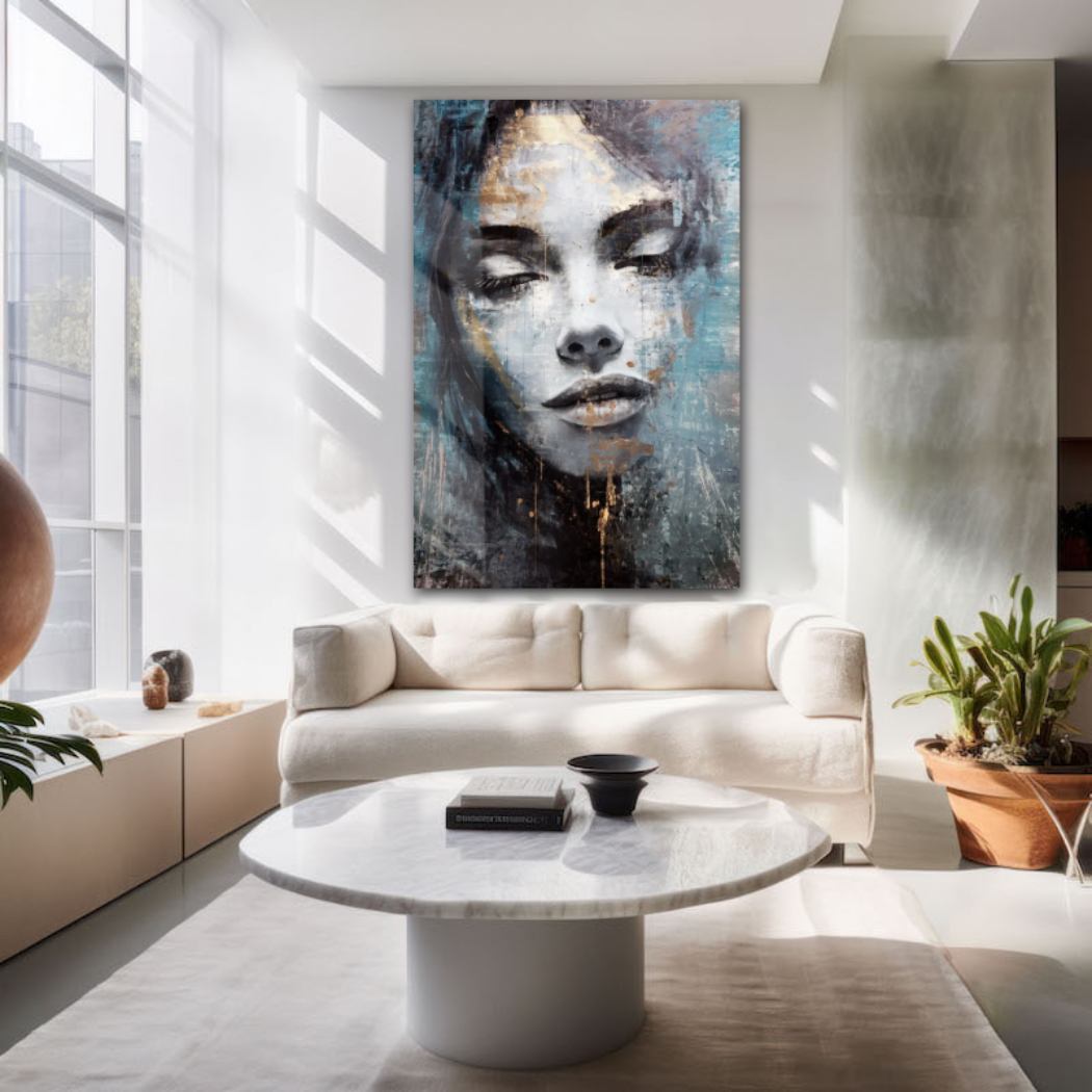 Kunstzinnig geschilderd portret op plexiglas of akoestisch schilderij. Deze wanddecoratie van een mooie vrouw op is stijlvolle portretkunst. Ons acrylglas van de hoogste kwaliteit levert een haarscherpe print van dit kunstzinnige portret van de mooie vrouw. Of wat dacht u van dit mooie geschilderde vrouwenportret op een akoestisch kunstwerk of Dibond muurkunst. Dit vrouwen fotokunstwerk is onderdeel van een serie van drie en daarom geschikt voor een mooie tweeluik of drieluik van portretkunst van vrouwen. Bekijk de gehele deze serie van drie Painted woman artworks: Painted woman collection