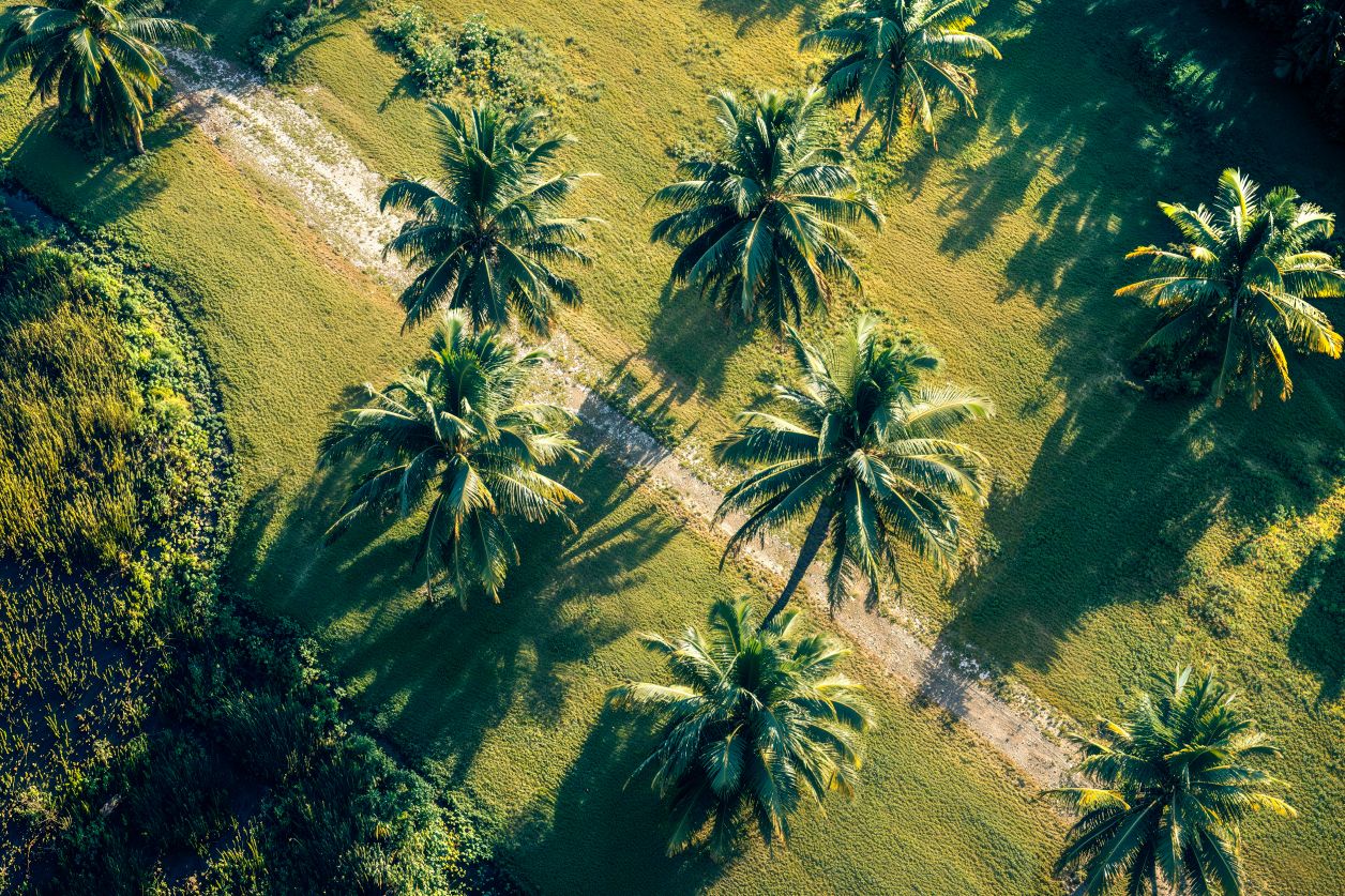 Muurdecoratie van palmbomen. Natuurlandschap van palmen in groene kleuren. Wanddecoratie in vogelvluchtperspectief van tropische bomen. Deze kunst voor aan de muur van de natuur is verkrijgbaar als plexiglas schilderij, Dibond fotokunst of als geluidsabsorberende muurdecoratie. Bekijk ook andere schilderijen van bomen op onze website: Trees
