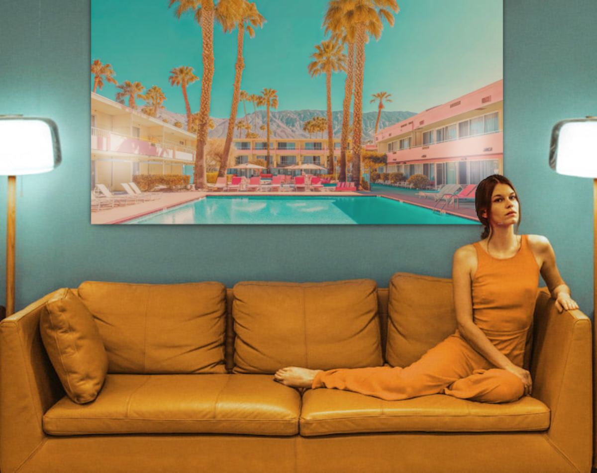 Wanddecoratie van zwembad in Palm Springs, California, in de Verenigde Staten. Een bijzonder artistiek fotokunstwerk van een zwembad in retrostijl voor een luxe aanvulling op uw interieur. Deze architectuurfoto, met haar palmbomen en Californian Hollywood vibes, is met haar retrokleuren geïnspireerd door de foto artworks van zwembaden uit de jaren ’70. Deze Amerikaanse wall art is verkrijgbaar op onder andere akoestische wanddecoratie, plexiglas en Dibond. Neem een kijkje bij onze gehele Poolside Retro collectie: Poolside Retro Collection