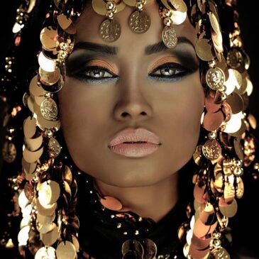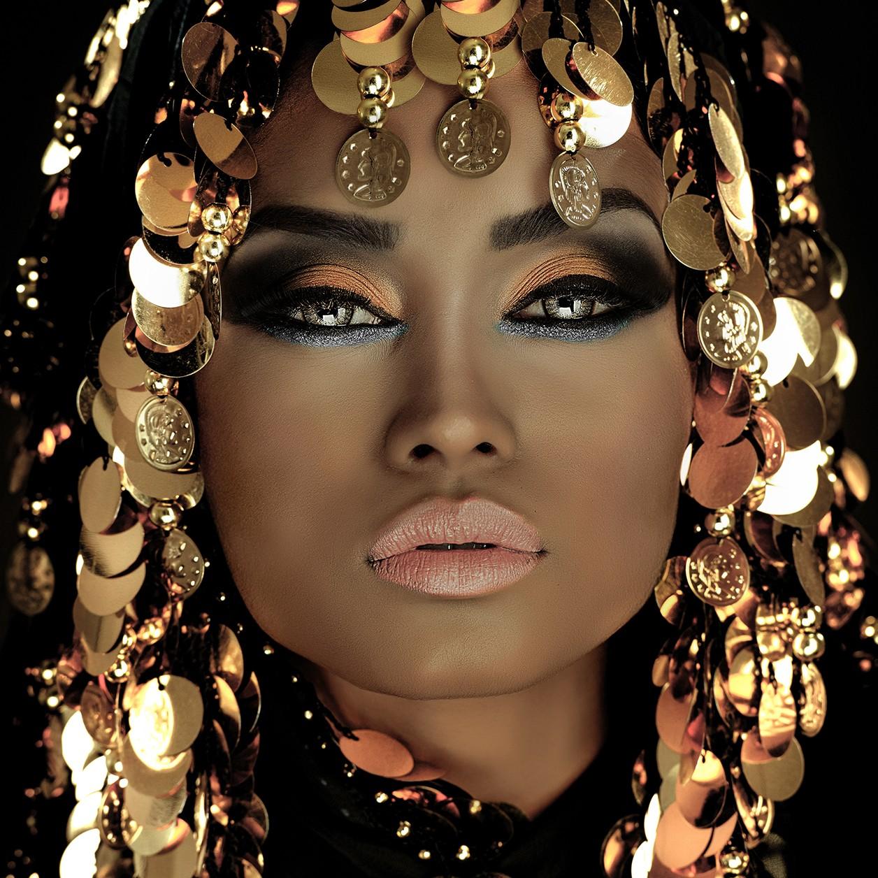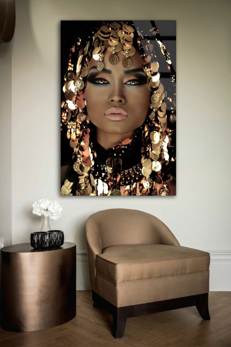 Bijzonder vrouwenportret van de koningin van goud. Deze sprankelende wall art toont een sexy vrouw in zwart en goud met glanzende gouden munten in haar haar. Deze beautiful woman is verkrijgbaar op verschillende materialen zoals acrylglas, Dibond en akoestisch doek. Neem een kijkje bij onze gehele portretcollectie: Portraits
