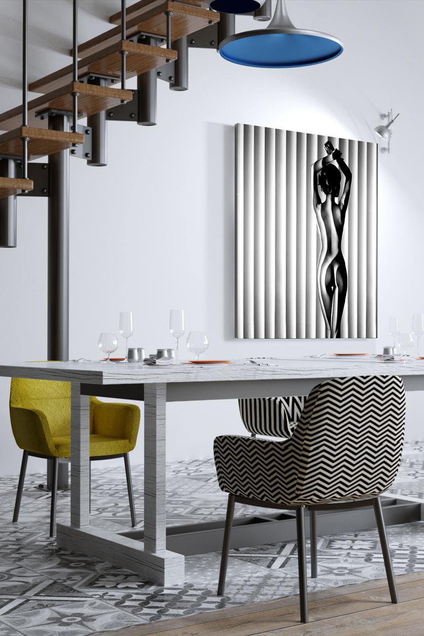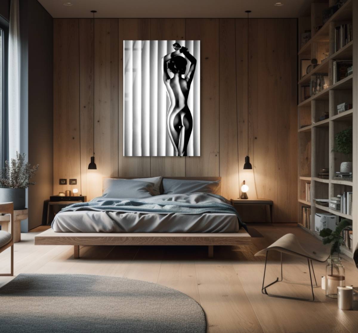 Artistiek erotisch naakt schilderij. Zwart wit foto van sexy naakt lichaam van een mooie vrouw. De black en white schaduwen op haar naakte lichaam maken deze mooie woman tot een artistiek fotokunstwerk. Deze nude fotokunst kan bijvoorbeeld als acrylglas schilderij, Dibond foto of akoestische wanddecoratie. Bekijk ook onze andere sexy schilderijen: Sexy Wall Art