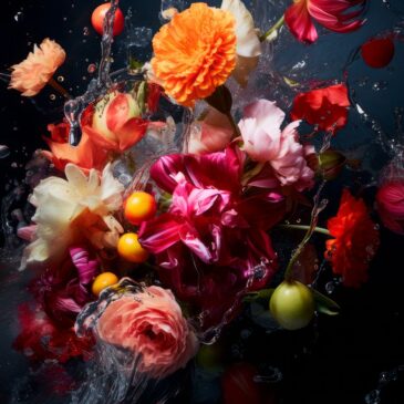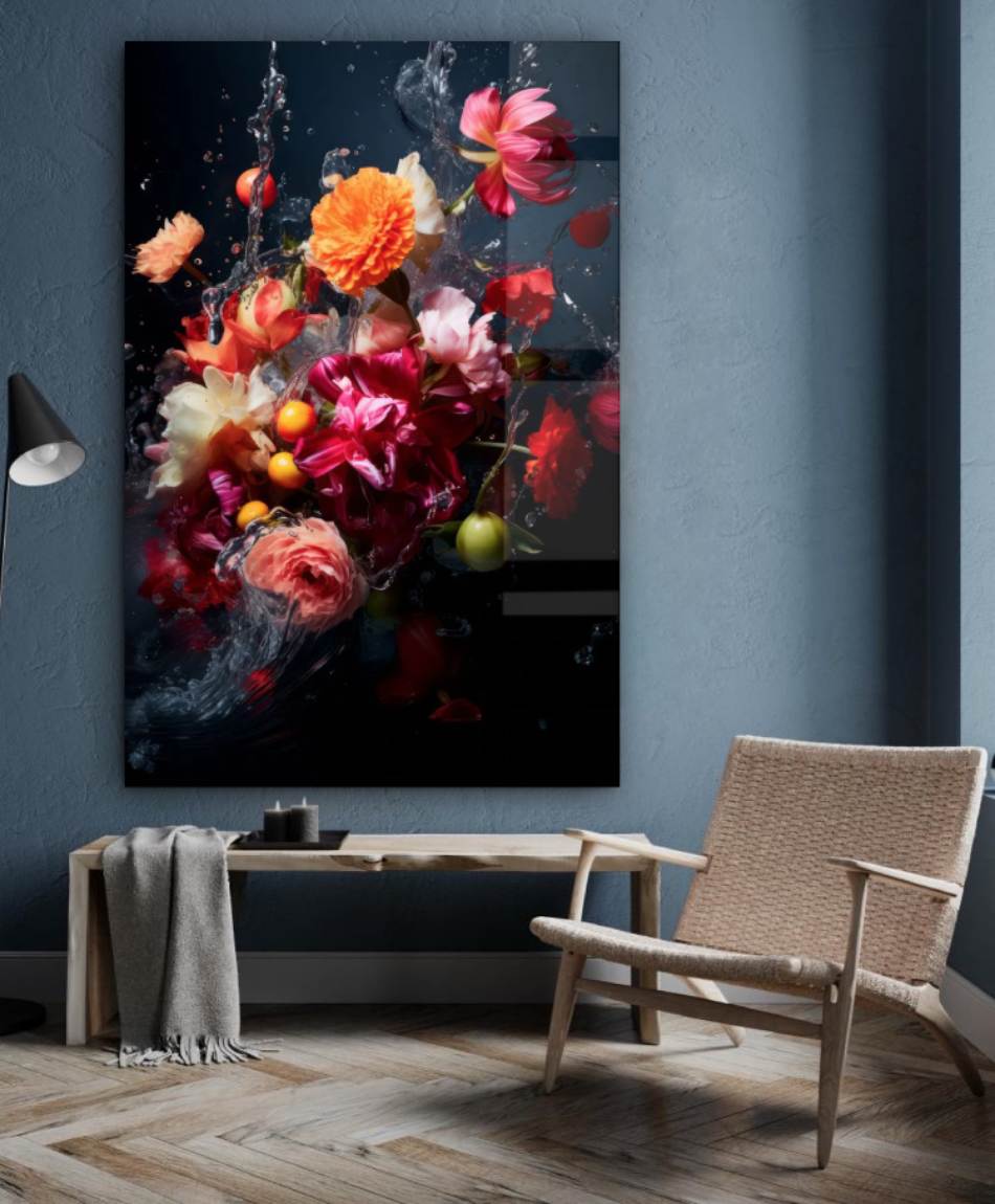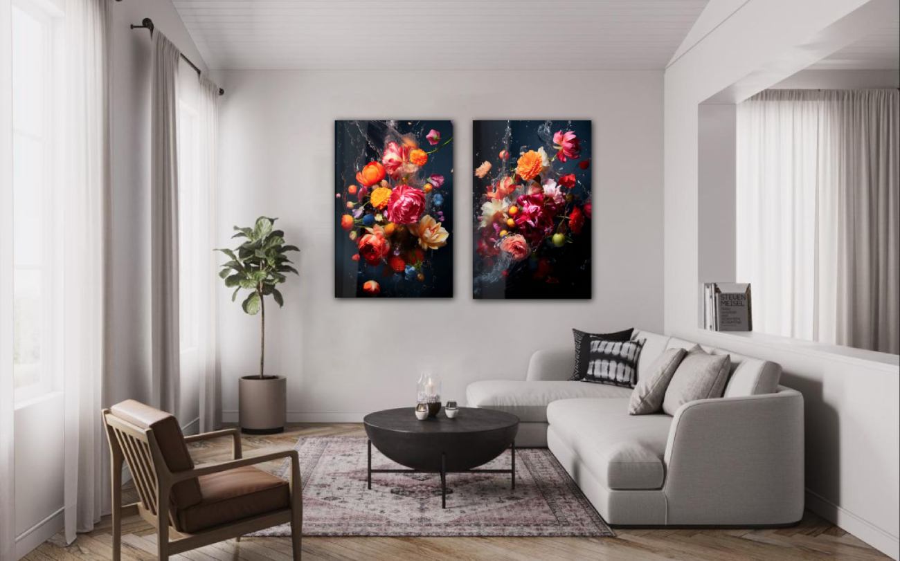 Kleurrijk schilderij van bloemen. Dit bijzondere stilleven van bloemen op geluidabsorberende wall art, Dibond muurkunst of als chique plexiglas schilderij van kleurrijke bloemen kan samen met de Still Life Flower II heel goed als een mooie, stijlvolle tweeluik van bloemen. De Still Life Flower I is met haar felgekleurde bloemen op de gitzwarte achtergrond een stijlvol, modern bloemkunstwerk met een klassieke touch. Bekijk ook Still Life Flower II uit deze serie van twee: Still Life Flower II.
