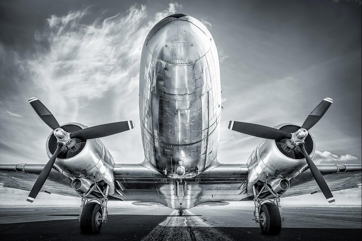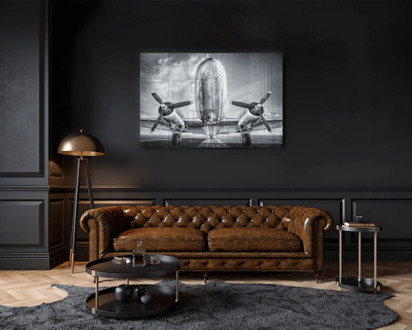 Zwart wit fotokunst van een vliegtuig. Sinds de gebroeders Wright met de Wright Flyer in 1903 een eerste gecontroleerde vlucht met een gemotoriseerd vliegtuig maakten, heeft de luchtvaart een hoge vlucht genomen. Naast piloten raakten vele kunstenaars gecharmeerd van deze grote, opstijgende machines. Het plexiglas schilderij The aviation collection is kunstfotografie in de puurste vorm. Het perspectief vanaf de onderzijde laat het vertrekkende of aankomende vliegtuig in al zijn grootsheid zien. Aan de andere kant toont de lange start- en landingsbaan en het uitgestrekte landschap de nietigheid van de vliegmachine. De zwart wit fotografie kunst op plexiglas en de metallic glans van het vliegtuig zorgen voor een indrukwekkend beeld in jouw interieur. Verkrijgbaar op onder andere plexiglas, Dibond en akoestisch vilt.