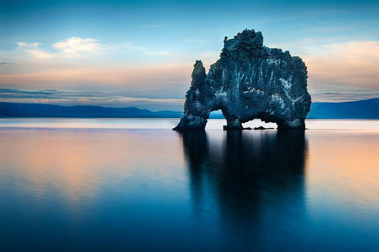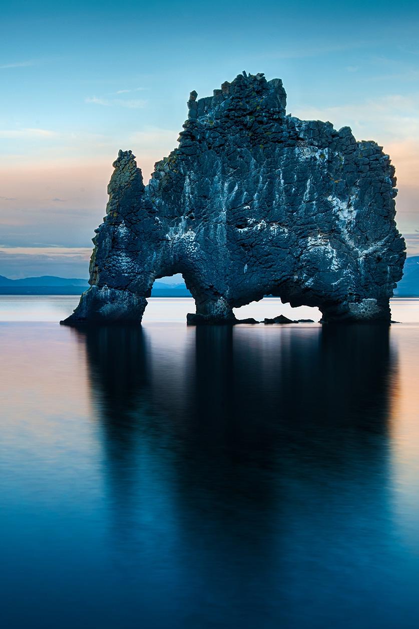 Schoonheid prikkelt de verbeelding en de zintuigen. In het plexiglas schilderij The Beauty of Iceland is Hvitserkur te zien, een spectaculaire rots aan de noordelijke kust van IJsland. Volgens een legende is de 15 meter hoge rots een versteende trol. Met enige fantasie kun je er een neushoorn, olifant, draak of dinosaurus in zien. De naam van het natuur -fenomeen Hvitserkur staat voor ‘wit hemd’, omdat de rots bedekt is met de witte uitslag van vogelpoep. Het is een adembenemend wall decor waar je maar naar blijft kijken. Fotokunst op plexiglas met vele prachtige blauwtinten die weerspiegelen in het kalme zeewater na de middernachtelijke zonsondergang. Verkrijgbaar op onder andere plexiglas, Dibond en akoestisch vilt.