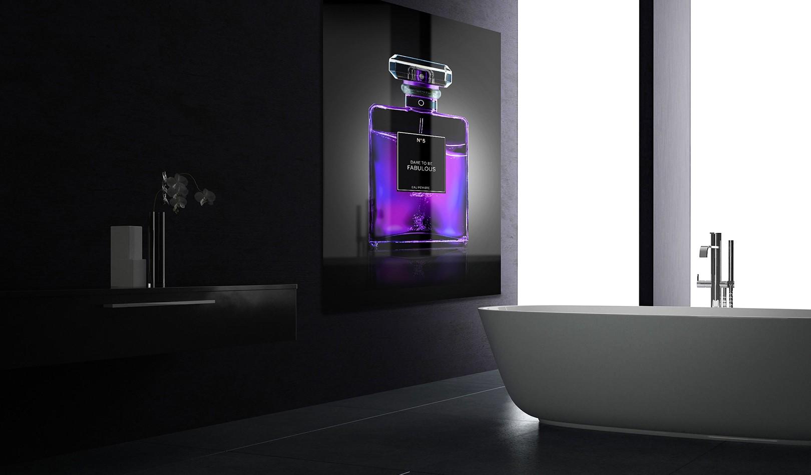 Prachtige paarse parfumfles geïnspireerd door perfume fashion icon. Deze luxury brand fotografie van beroemd modemerk is wall art met stijl! Een modern fotokunstwerk die de verleiding van designer parfums zoals Chanel verkent. Artistieke interpretatie van fashion art met luxury perfume bottle verkrijgbaar op onze verschillende materialen: acrylglas, Dibond en akoestisch doek. Bekijk de gehele perfume collection op onze website: Perfume Artworks