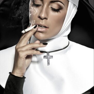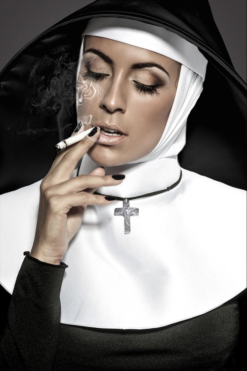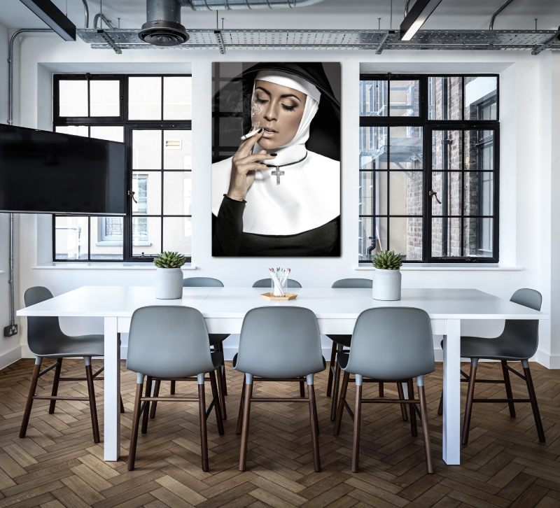 Luxe muurdecoratie van een mooie non die een sigaret rookt. Deze smoking sexy nun is onder andere verkrijgbaar op Plexiglas, Dibond en akoestisch doek. Bekijk ook onze andere sexy schilderijen: Sexy Wall Art