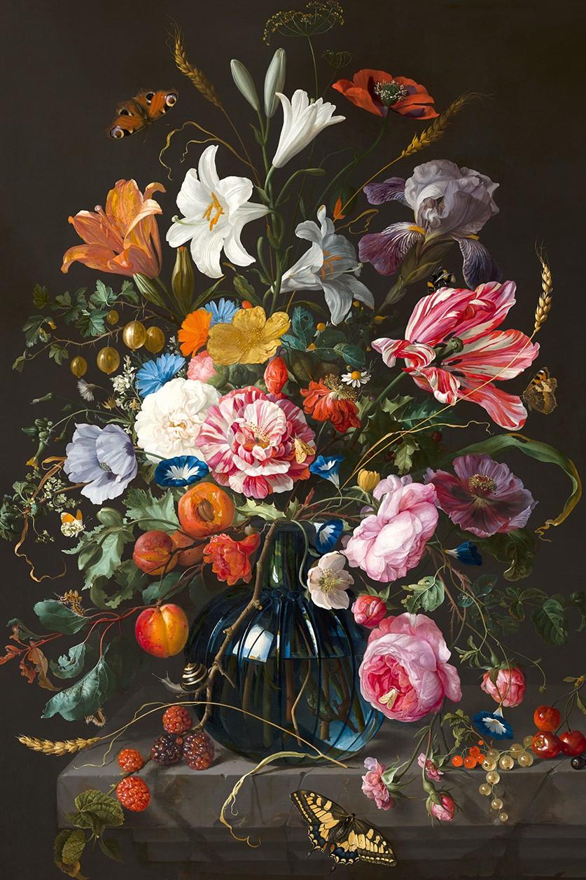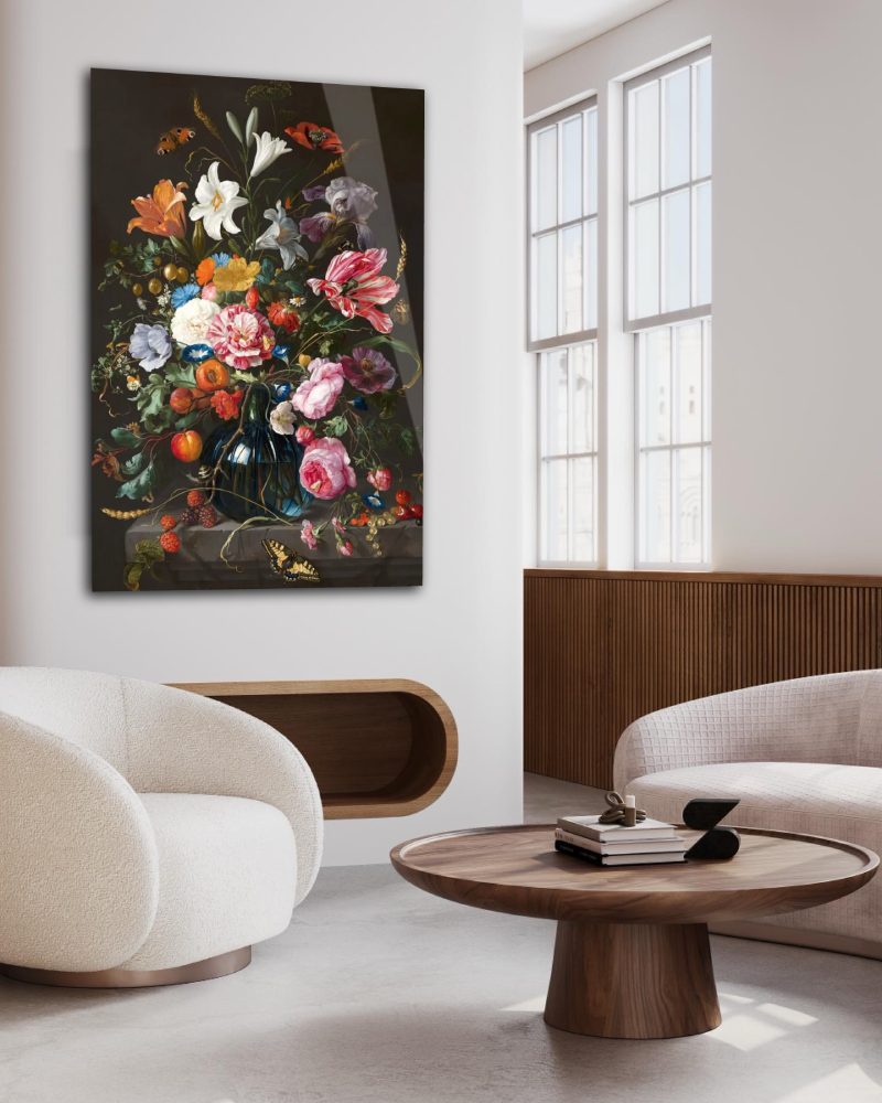 Kleurrijk bloemen stilleven op akoestisch vilt, Dibond of plexiglas. Dit bloemen artwork heeft een klassieke sfeer en raakt aan de stijl van de stillevens van de oude meesters. Dit kleurrijke schilderij van bloemen geeft een prachtig mat schilderij effect en tevens verkrijgbaar als bloemenstilleven op ons plexiglas van museumkwaliteit en Dibond, welke sprankelende lumineuze kleuren en diepte geven. Bekijk de gehele Still Life Collection op onze website: Still Life Collection