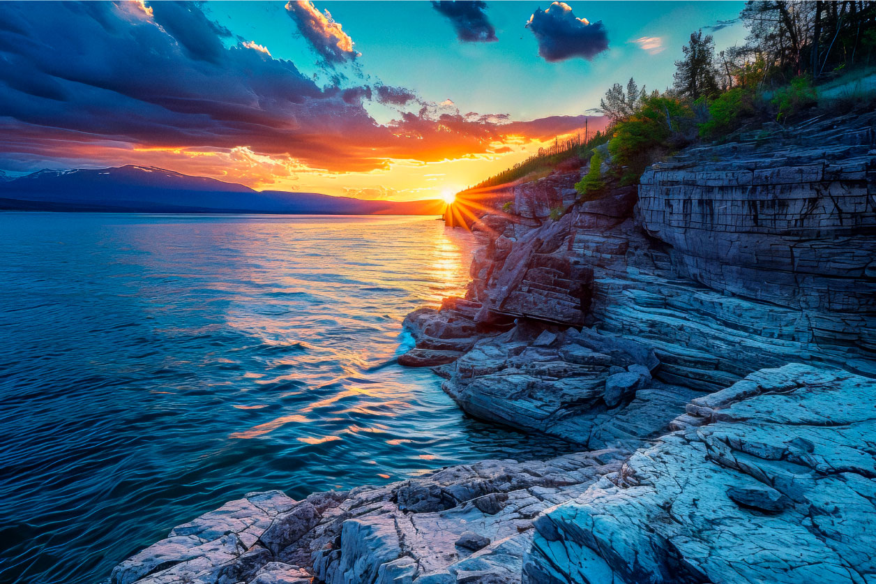 Kunstfoto van zonsondergang aan zee