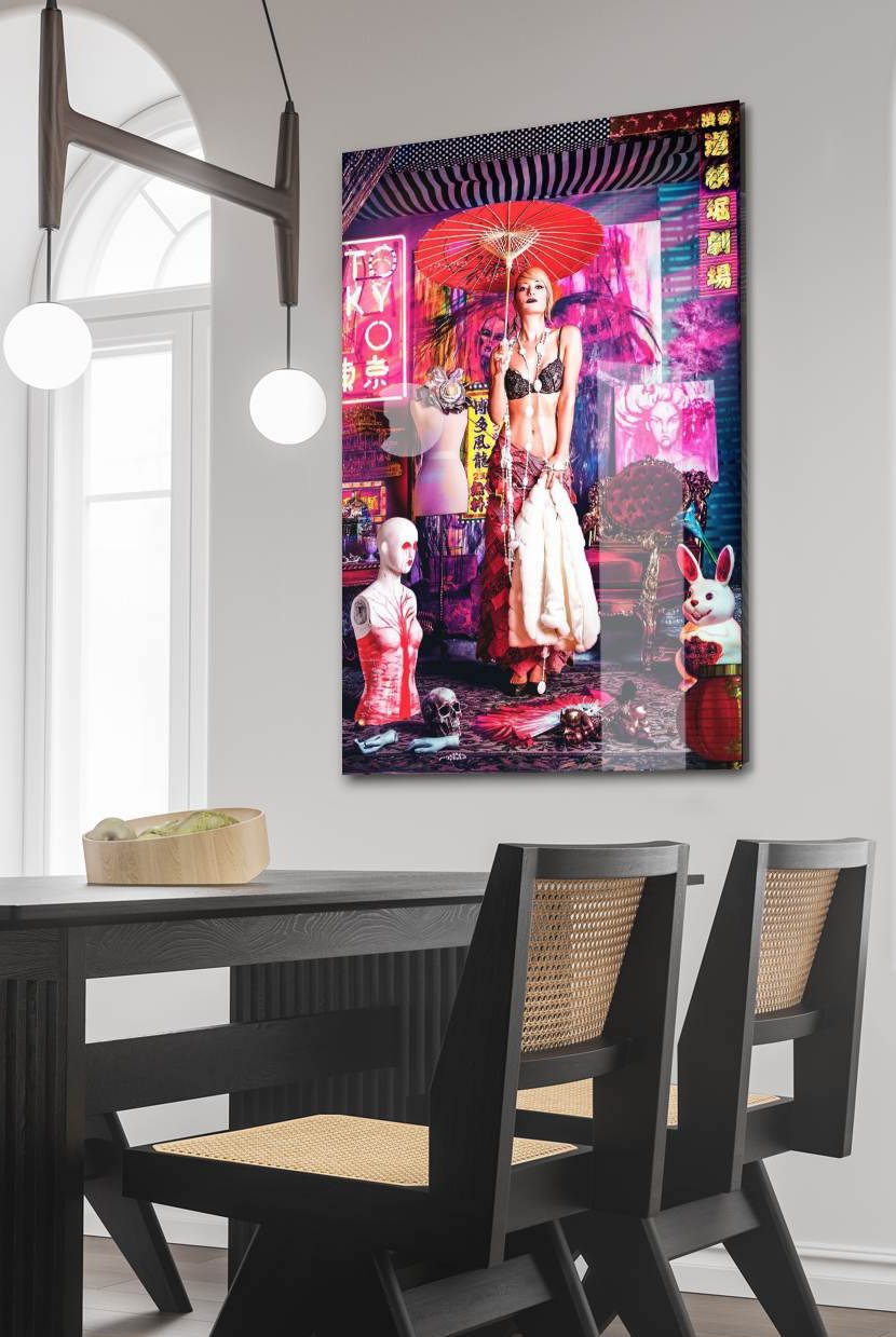 Fotografie van een mooie vrouw die een stukje van de Tokyo city lifestyle reflecteert. Creatieve fotografie met een edge in roze, rode en paarse kleuren. Deze unieke wanddecoratie is verkrijgbaar op verschillende materialen zoals: acrylglas, Dibond en akoestisch doek. Neem naast deze fotoart van een mooie vrouw in een surrealistisch Japans schouwspel, een kijkje bij onze gehele Culture Collection: Culture Collection
