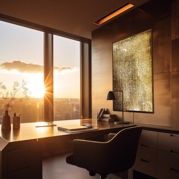 Akoestisch doek is een speciaal ontworpen materiaal dat geluid absorbeert en tegelijkertijd als stijlvolle wanddecoratie dient. Het combineert esthetiek met functionaliteit, waardoor het perfect is om zowel je interieur te verfraaien als de akoestiek in een ruimte te verbeteren tot wel 75%. Door de vilt textuur zijn de kleuren zachter dan bij plexiglas of dibond, wat vooral prachtig uitpakt bij abstracte en rustige werken. Met akoestische wanddecoratie verbeter je de geluidsbeleving in je huis of kantoor. Het doek dempt nagalm en storende geluiden, terwijl het kunstwerk een elegant statement maakt. Zo creëer je een rustige en harmonieuze sfeer met een chique geluiddempend schilderij.